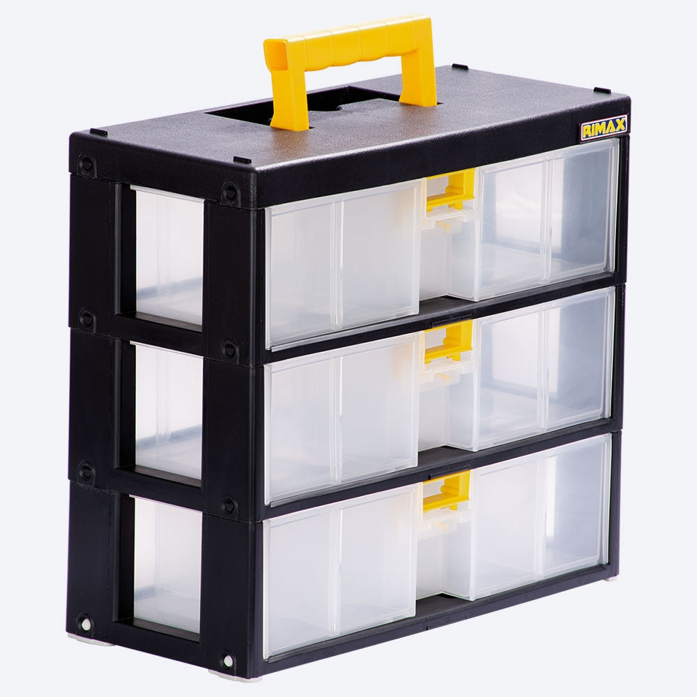 Organizador con gavetas de 3 niveles, color negro con amarillo