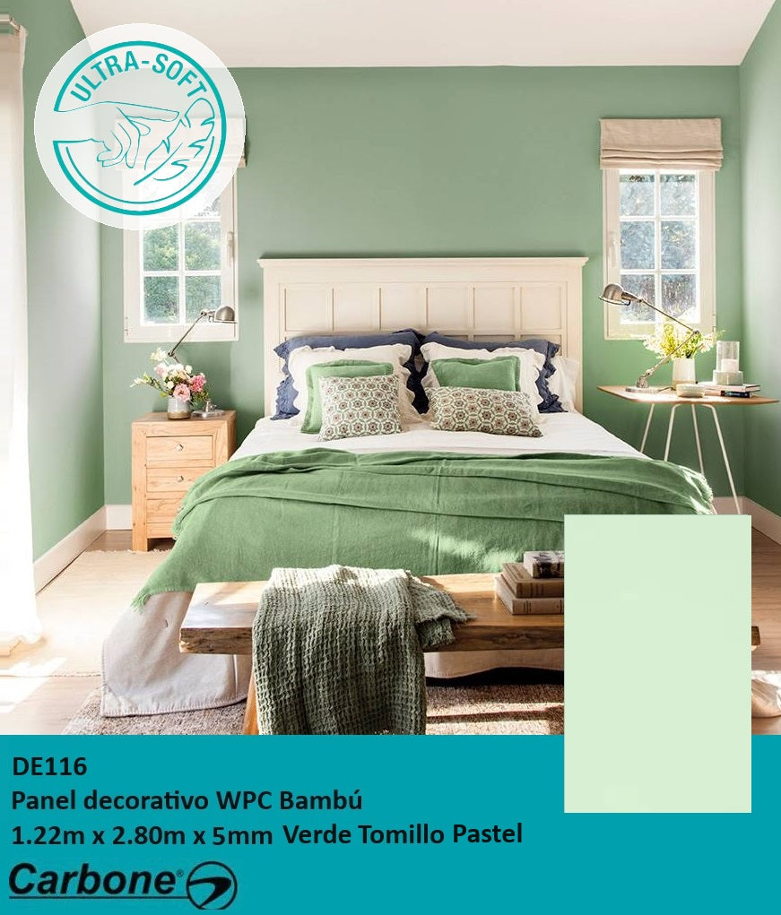 | *Nombre | Panel Decorativo WPC Bambú Soft touch 1.22 m x 2.80 m x 5 mm Verde Tomillo Pastel |