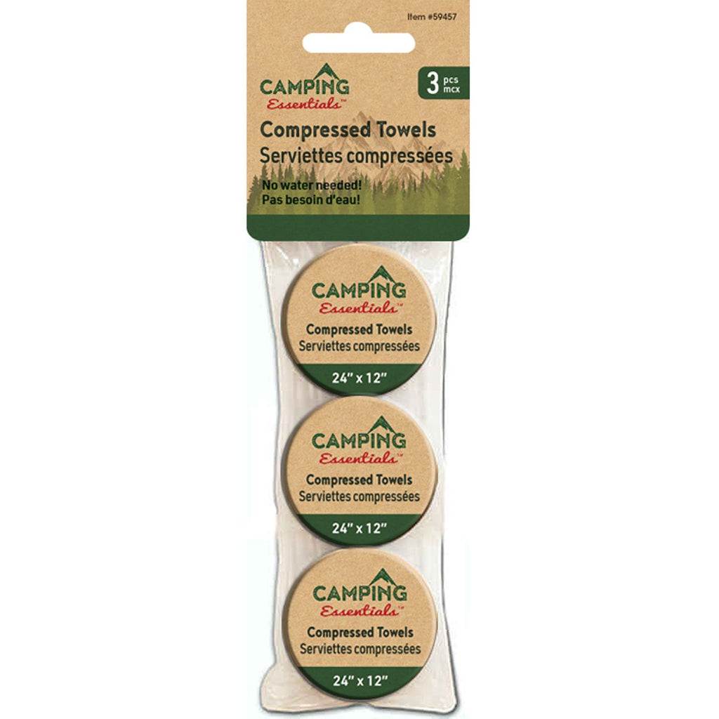 Paquete de 3 toallas comprimidas para acampar, 24 ''x 12'', no se necesita agua