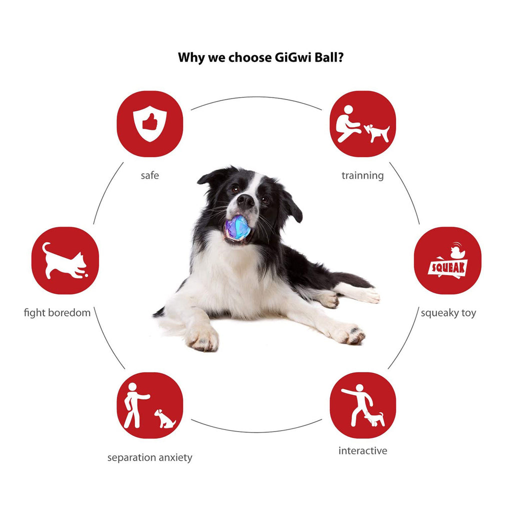 Pelota TPR azul purpura para mascota medida medium 6 cm