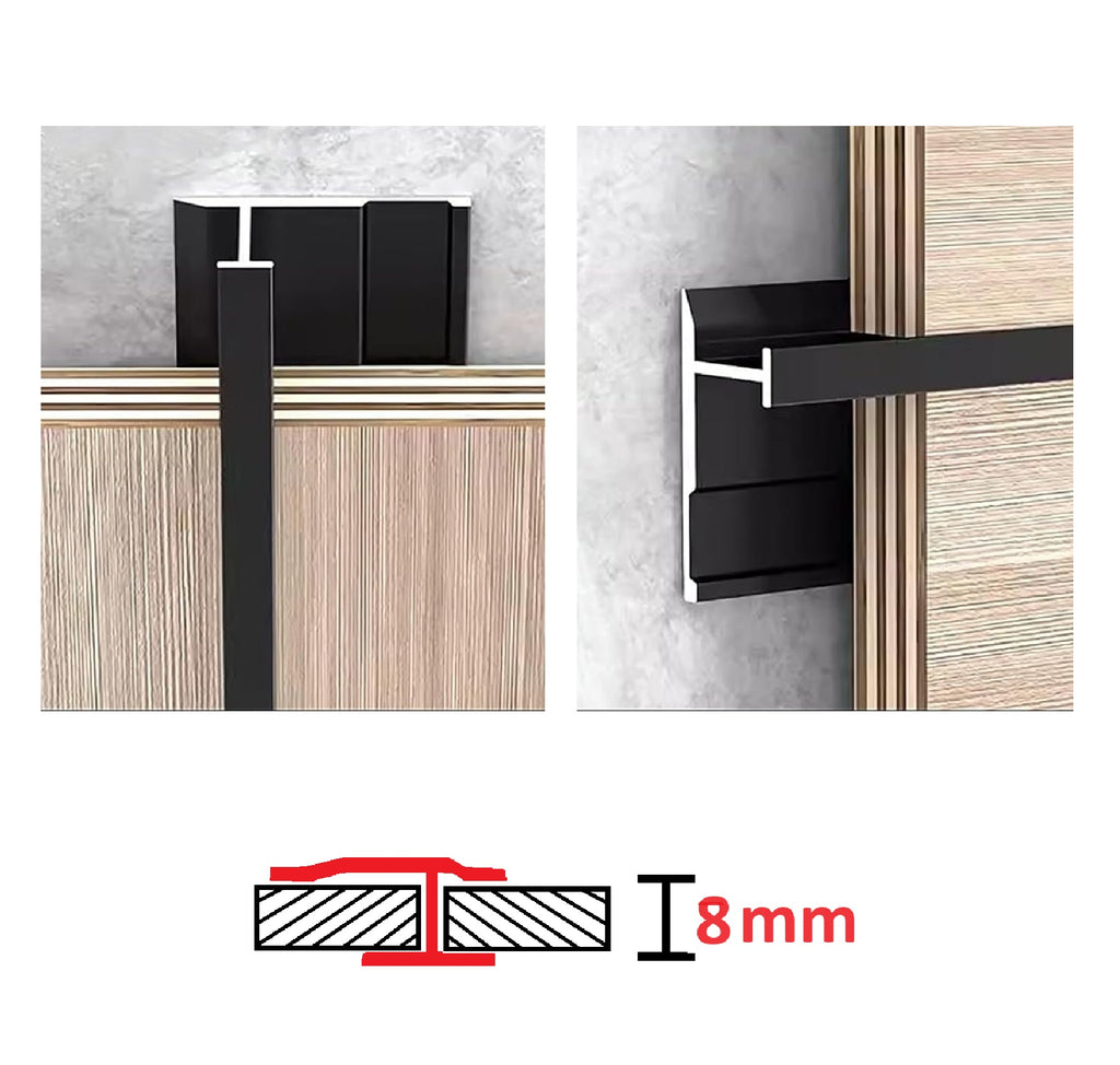 Perfil T Remate Central entre Laminas de 8 mm Bambú WPC PVC 3m long Negro