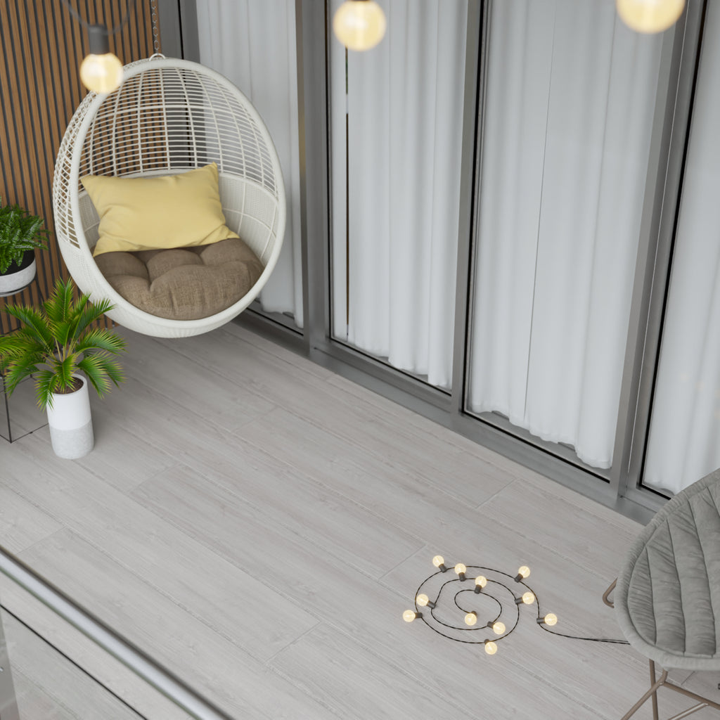 Piso SPC compuesto por piedra y plástico, Acabado madera Roble Gris 1220 x 180 x 5.5 mm con IXPE 10PC / PACK