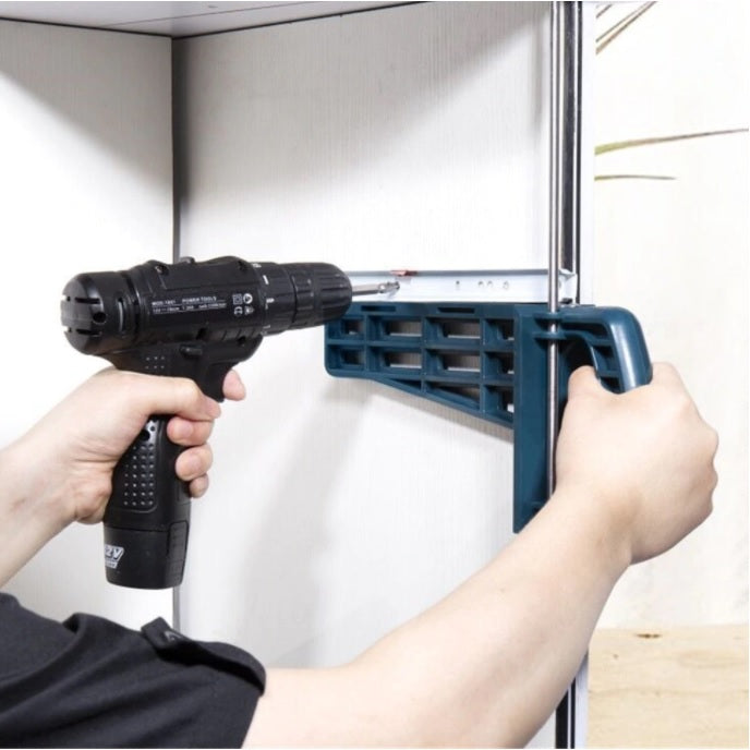 •Esta plantilla fácil de usar mantiene las guías en su posición mientras perfora los agujeros de montaje en el gabinete.
