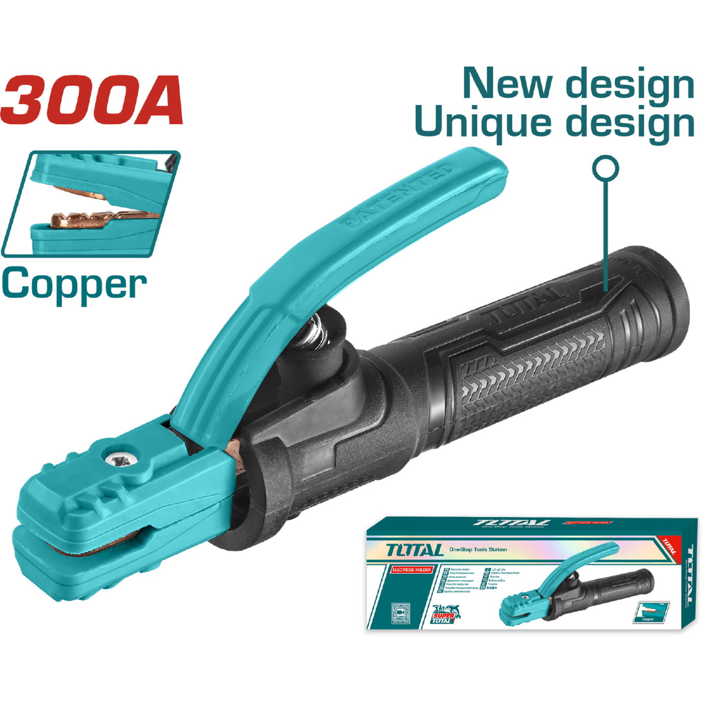 Porta Electrodo TOTAL. Corriente Nominal 300 A. Adecuado para la Maquina de Soldar MMA TOTAL.