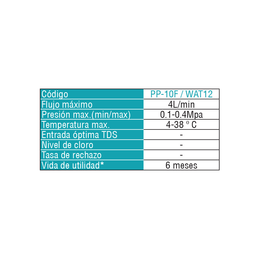 PP-10F Filtro de recambio para Crystal 75 (cada 6 meses) Filtro PP elimina partículas de óxido, suciedad y sedimentos, mejorando el sabor, aumentando la transparencia y reduciendo el olor del agua.