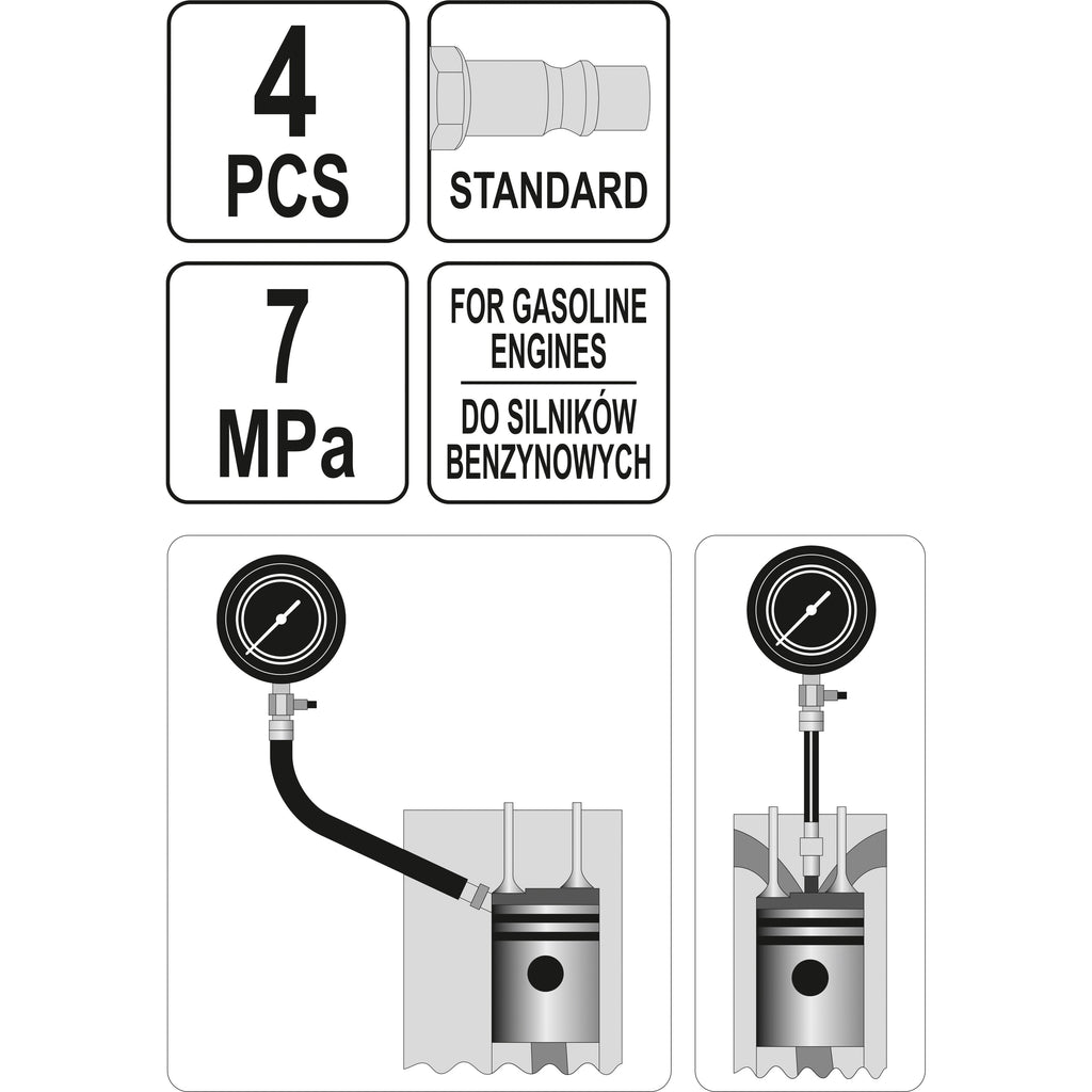 Probador Test De Fugas De Cilindro Prueba De Compresión De Motor Gasolina 0-100 PSI (Set 4Pzas)