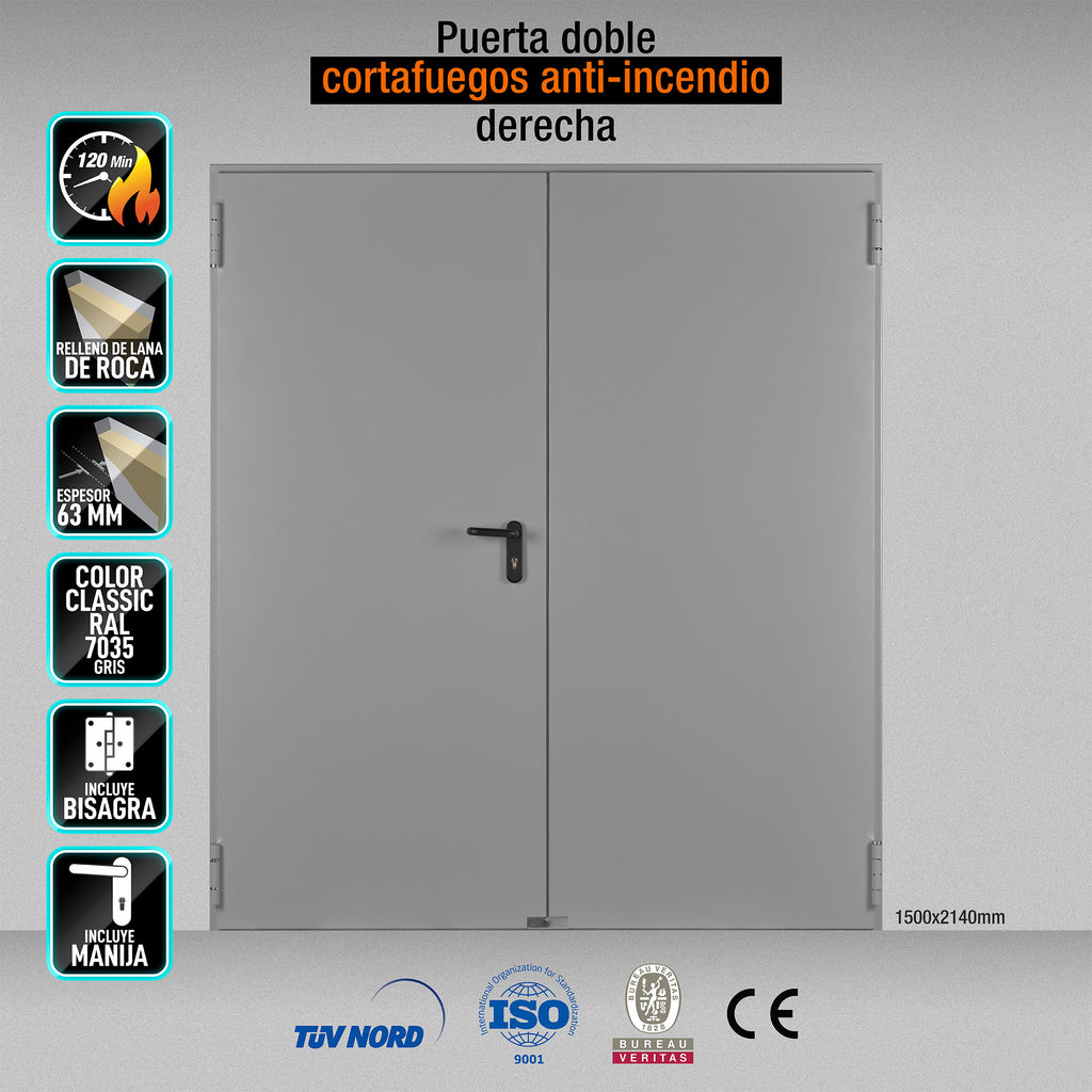 Puerta Cortafuegos anti incendio Doble Derecha EI120 minutos 1500x2140mm marco MC3 color Gris 7035