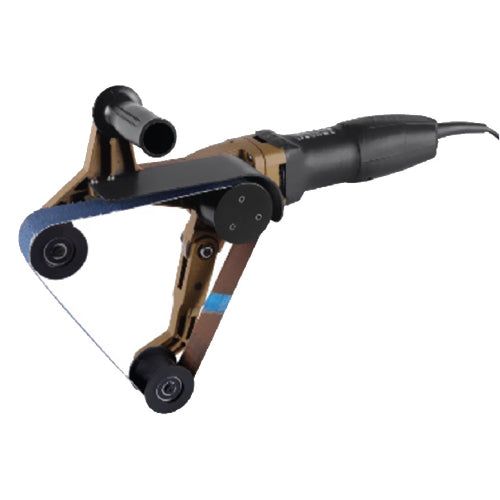 Esta máquina hace que sea increíblemente fácil pulir ángulos de tubos cerrados o abiertos, tales como barandillas, los brazos especiales permiten satinar 180 grados del tubo de una vez. No hay manera más fácil o rápida para dar acabado a un tubo instalado que con esta máquina. Posee un motor maratón poderoso, y un control electrónico de velocidad que hará mantener la máquina estable y con potencia constante. Cepillos de carbón externos que harán más fácil su reemplazo para mantenimiento.