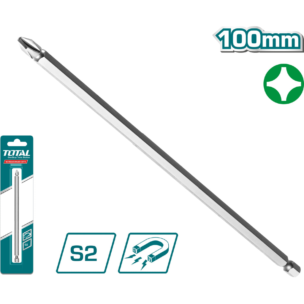 Punta De Destornillador Estrella PH2.(1 Pieza,100 Mm,S2).Punta Magnética.