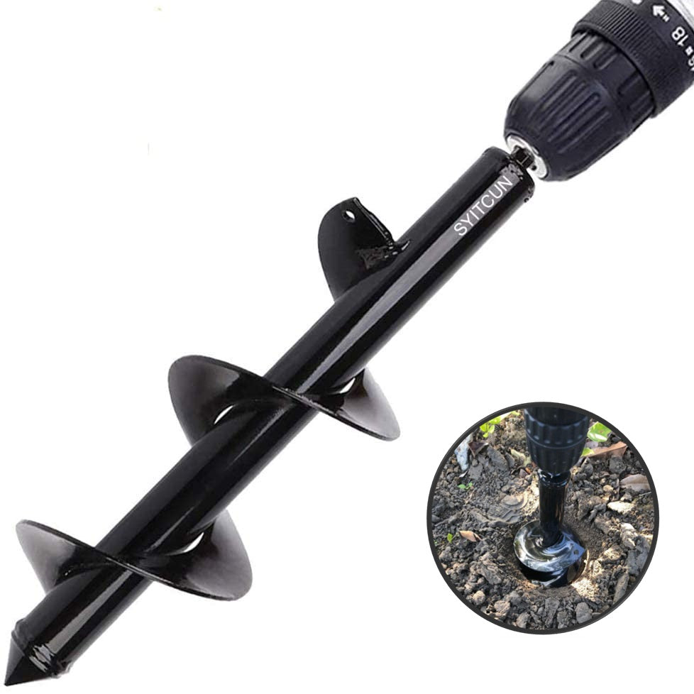 La punta de broca llega al suelo primero y lo mantiene estable cuando estás cavando terrenos duros. Nuestra broca de tierra funciona con la mayoría de taladros de 3/8 pulgadas o más grandes, recomendamos utilizar un taladro eléctrico con boca de taladro ajustable, por lo que no tendrás que preocuparte de si el taladro se ajusta a tu taladro eléctrico. Se recomienda un taladro de 18 V o superior. Para taladros inalámbricos se recomienda un taladro mínimo de 14 V.