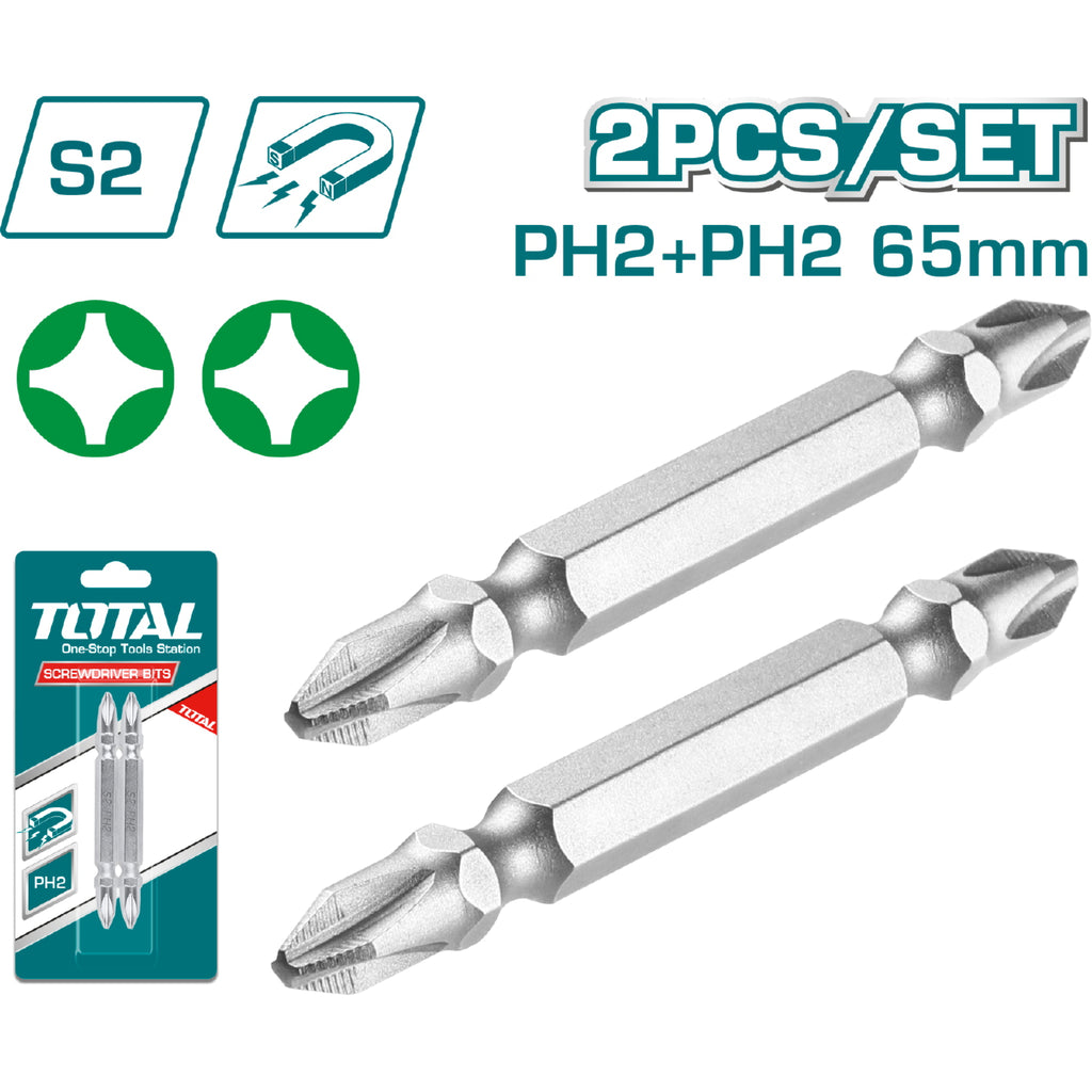 | *Nombre | Puntas de destornillador PH2+PH2 (Set 2 piezas,65 mm,S2).Punta magnética. |