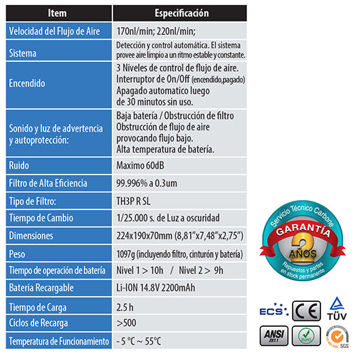 Purificador de aire portatil (PAPR) con careta profesional Grand abstract (918I) bateria recargable.(2años)