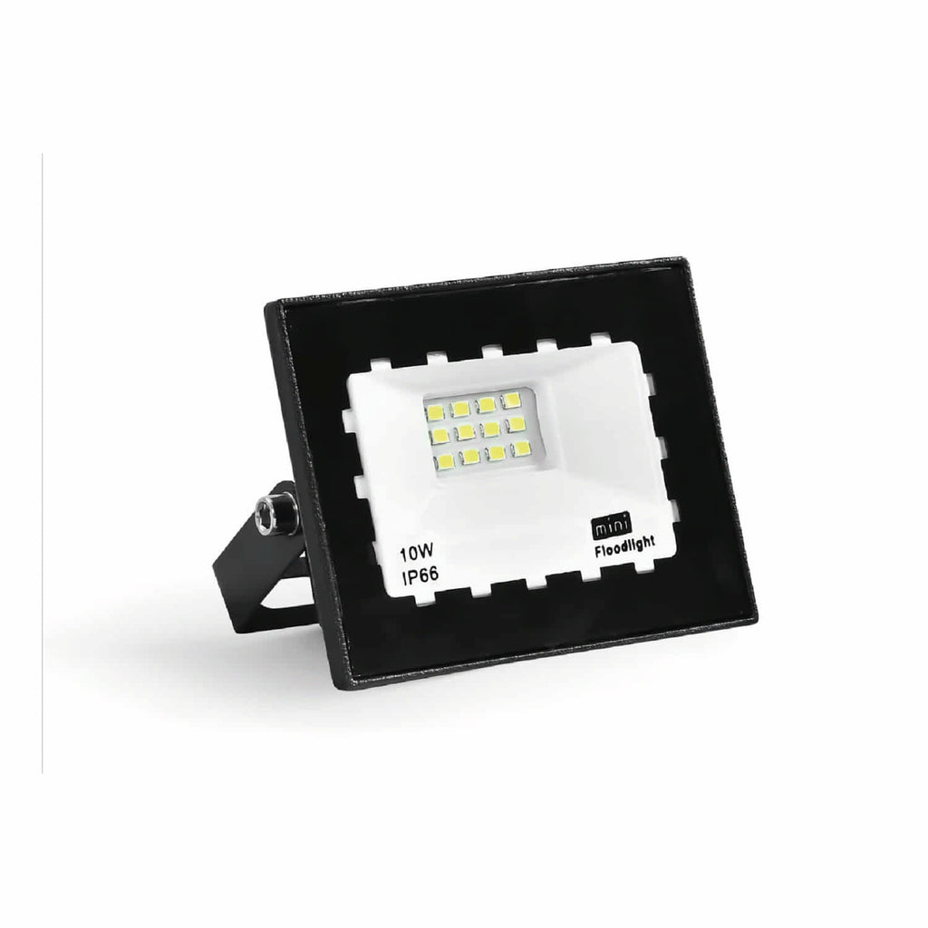 REFLECTOR LED 10WATTS 6500K Iluminación de alto brillo de luz fria, se puede utilizar para necesidades de iluminación exterior tales como seguridad, edificios, estadios, estacionamientos, etc. Resistente al agua y polvo, facil de instalar, ahorro de energia y eficiencia de luz de bajo consumo, voltaje de 110-240V 50-60Hz acabado de aluminio y medidas de 360*360*35 milimetros. Posee 10 Watts y 1000 lumenes.