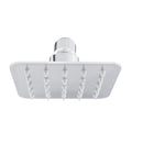 Regadera de plato cuadrado de 4” sin brazo y chapetón. Cuerpo en acero inoxidable 304 . Acabado cromo. Trabaja a baja presión (0.2 a 1 kg/cm2). Garantía de 3 años sobre defectos de fabrica