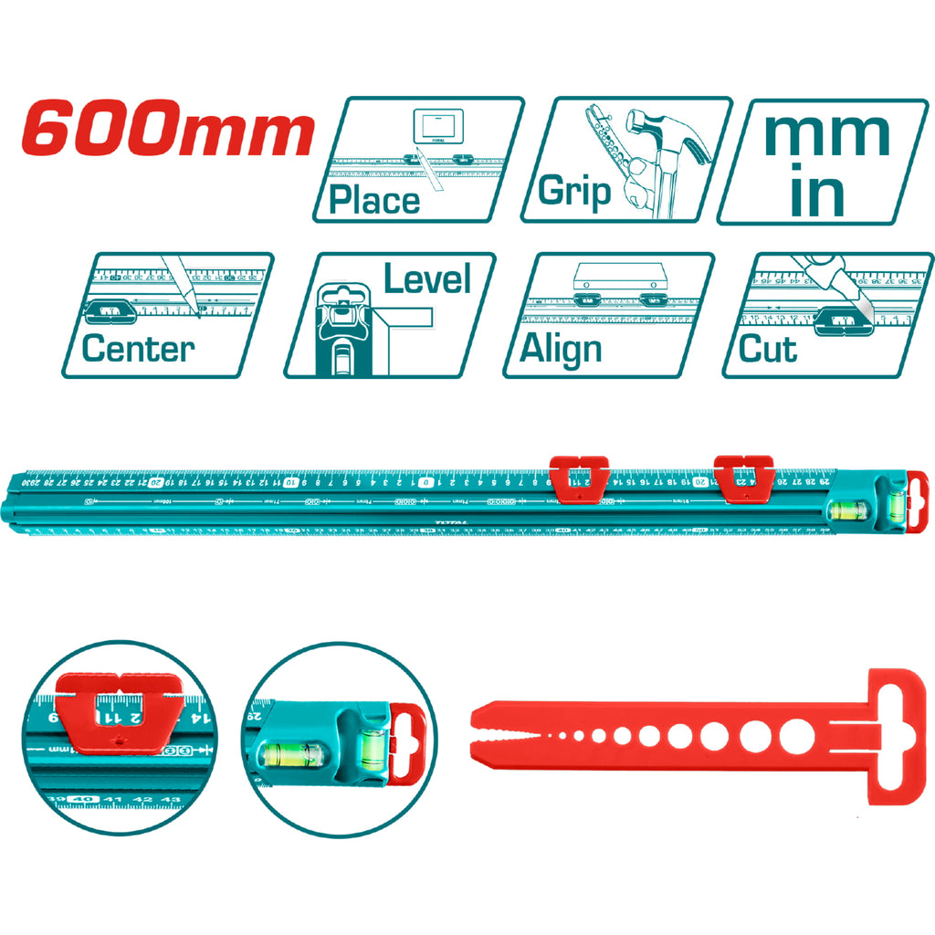 Regla De Aluminio De Dos Piezas. Tamaño: 60Cm.