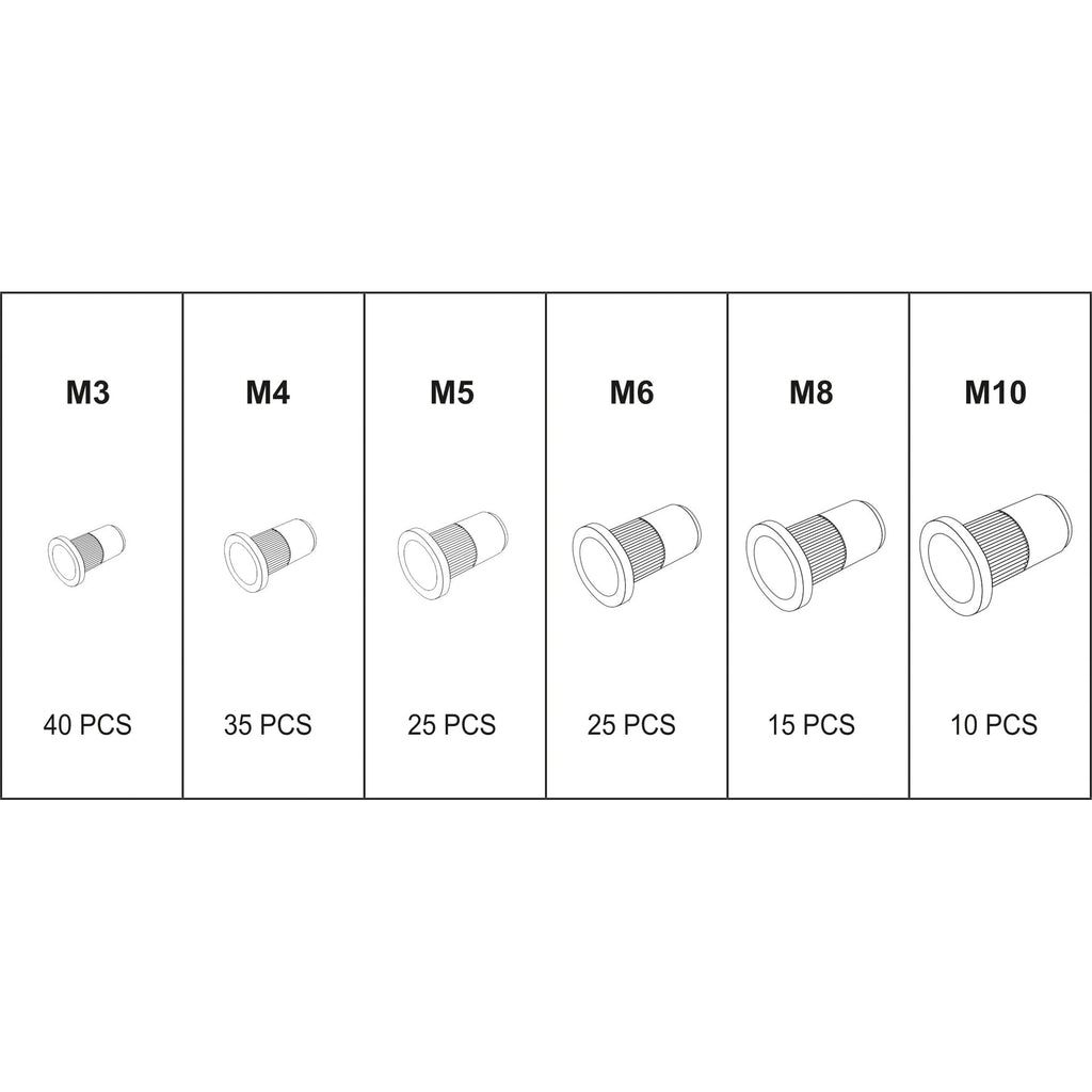 Remaches roscados variados M3-40PC M4-35PC M5-25PC M6-25PC M8-15PC M10-10PC