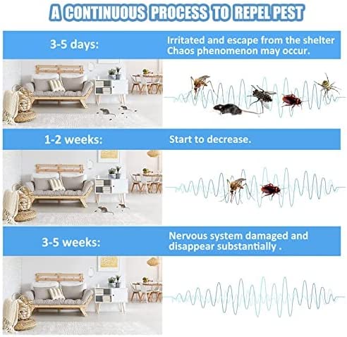 Asegúrate de instalarlo verticalmente 7 a 31 pulgadas del suelo y asegúrate de que no haya barreras como cortinas o armarios que cubran delante del repelente. La mayoría de los clientes pueden ver los resultados en 2-3 semanas.