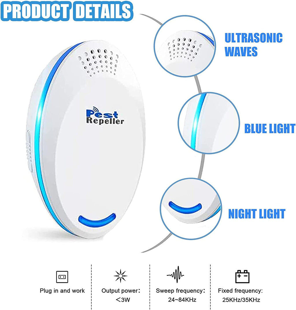 Juego de 4 repelentes ultrasónicos de plagas para insectos, ratas, cucarachas, arañas, moscas, dispositivo para el hogar, oficina, almacén, hotel, etc.