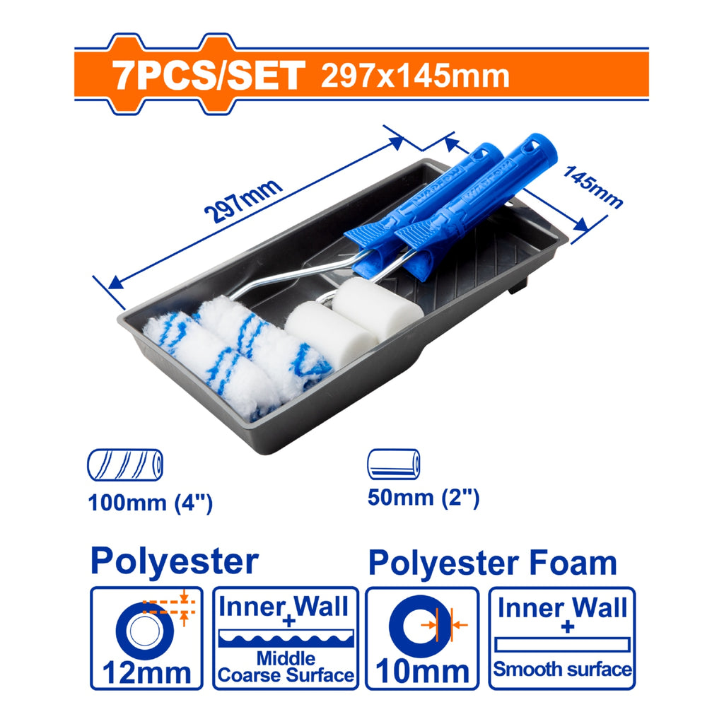 Rodillos y Bandeja para pintar. Set de 7 piezas.
