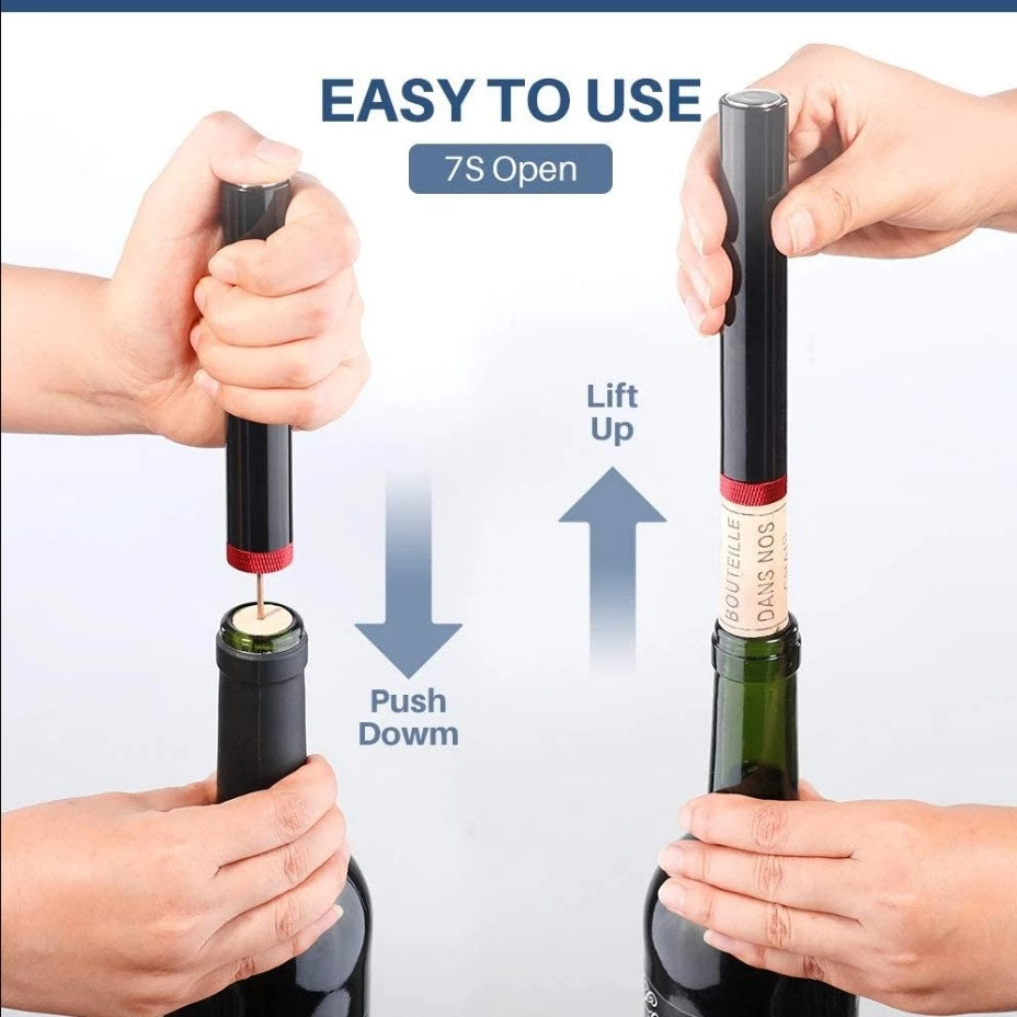 Sacacorchos de aire a presión para botellas de vino, de acero inoxidable, color negro