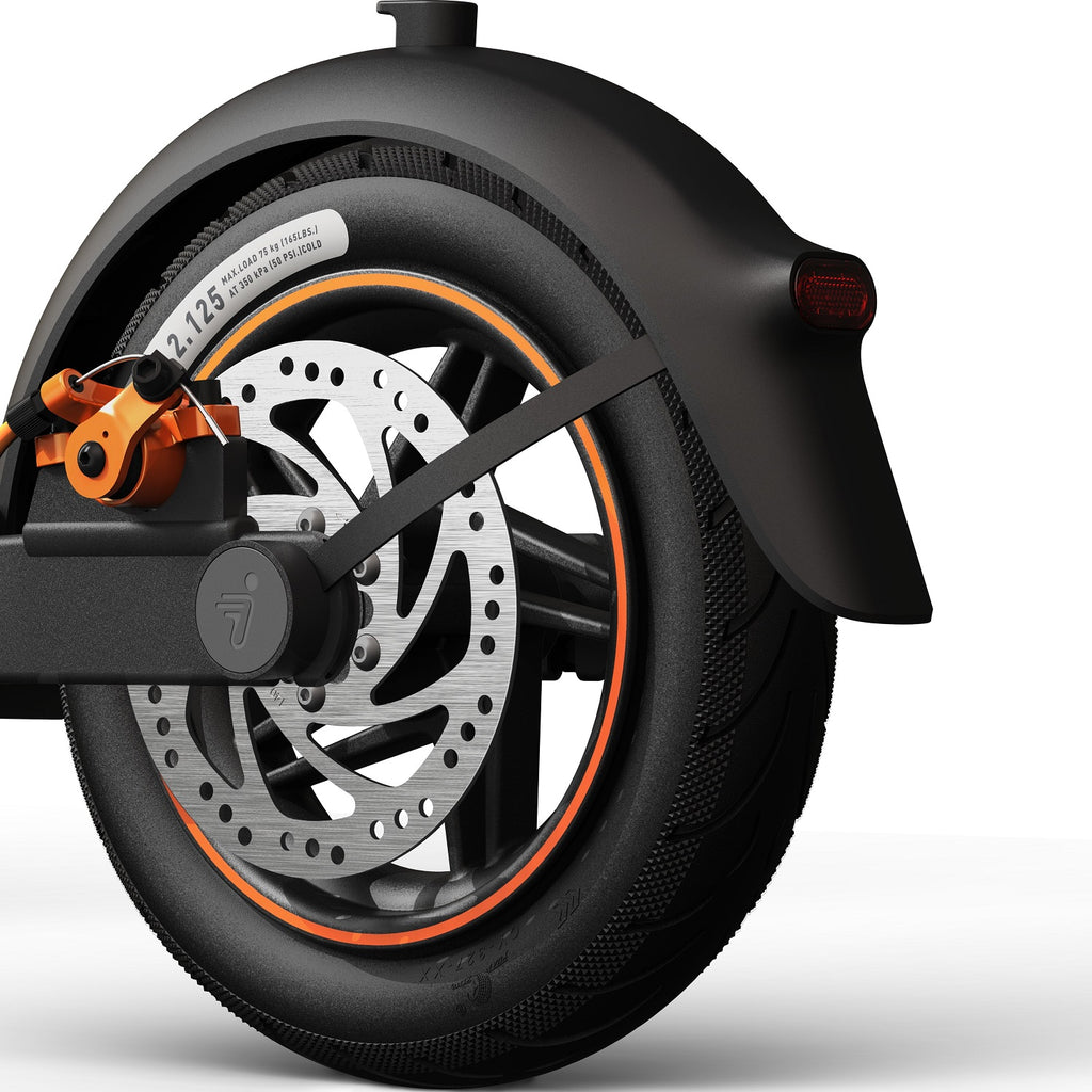 Gracias a los 2 frenos independientes, el freno delantero electrónico y el freno de disco trasero, el patinete proporciona un frenado más seguro y rápido.