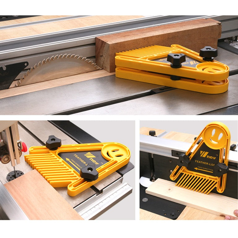 •Las guías cuentan con una fila de cerdas flexibles a lo largo del borde y cuando se colocan en la sierra de mesa, ayuda a mantener las piezas de trabajo presionadas firmemente hacia la mesa.