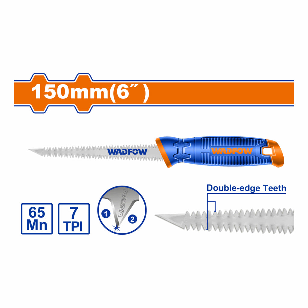 | Características | Sierra doble filo para gypsum de 6”. 65Mn. 7TPI. Serrucho para yeso. Dientes rectificados de precisión con 2 filos. Hoja de acero al carbono endurecido y dientes afilados para cortes finos suaves, afilados, agresivos y rápidos. |