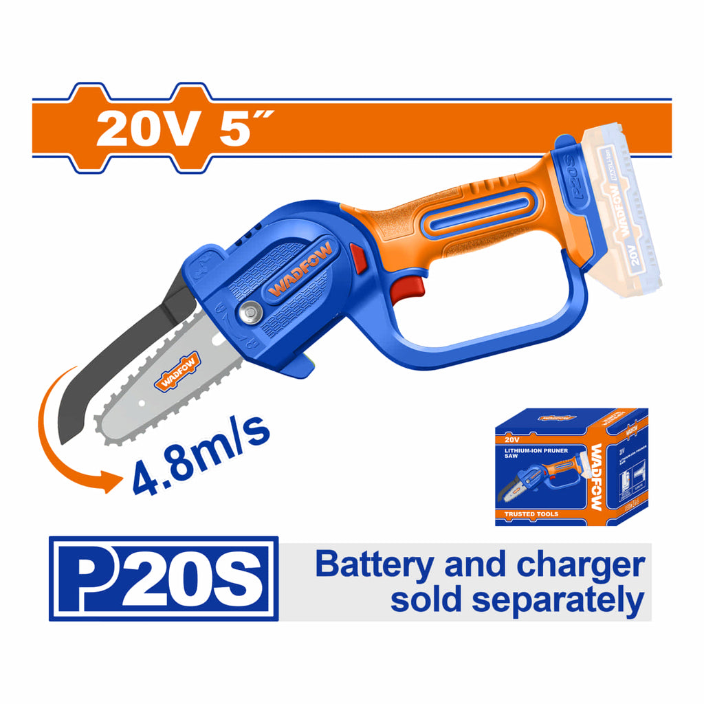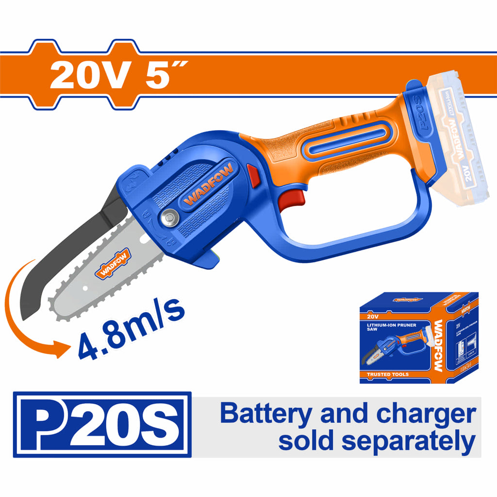 | Características | Sierra Podadora Inalámbrica 20V Long.5" (13cm). Batería y cargador se venden por separado. Incluye: Cadena de sierra de 5" ,barra de sierra 5", pieza de llave. |