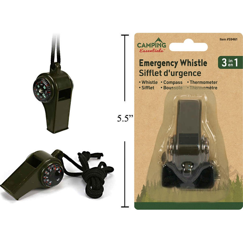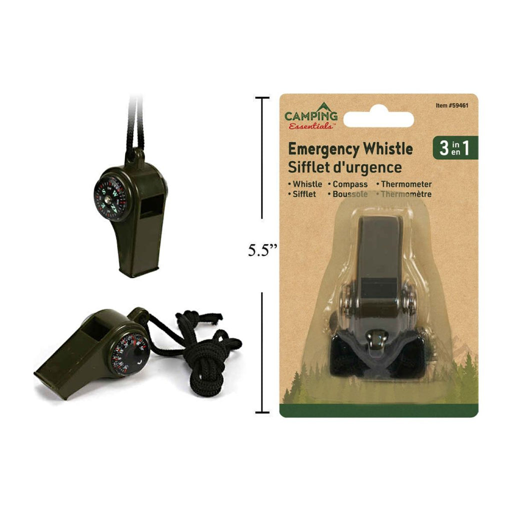 Silbato de emergencia / brújula y termómetro para acampar 3 en 1