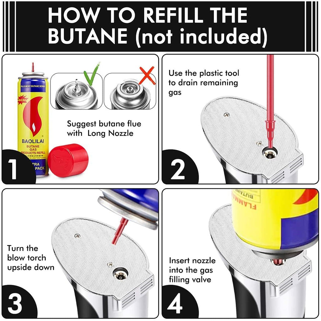 -Es recargable con cualquier marca de gas butano (El gas butano no se encuentra incluido).