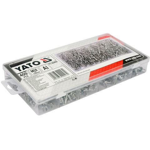 Yato Surtido De Remaches Ciegos De 400 Piezas, 2.4*6.4: 100 Piezas; 3.2*6.4: 100 Piezas, 4*6.4: 100 Piezas, 4.8*6.4: 100 Piezas, Material: Aluminio, En Un Estuche De Plastico. Set De Remaches Ciegos, Remaches Variados, Caja De Remaches