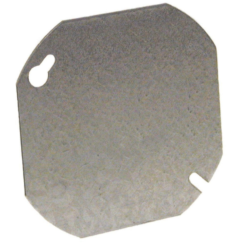 Tapa Metalica Ciega con Hueco de 1/2 para Cajilla de Octagonal de 4 Pulgada. No incluye Tornillos. Acero Galvanizado. Espesor de 1.0 mm. Codigo de Barra con Sticker