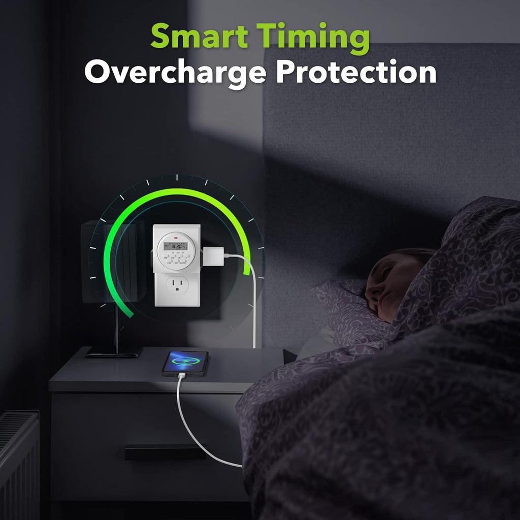 Temporizador digital programable por 7 días, tomacorriente dual.