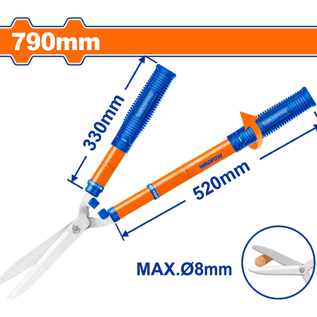 Tijera Cortasetos Telescópica Extensible 550-750Mm. Acero Al Carbón. Tratamiento Térmico.
