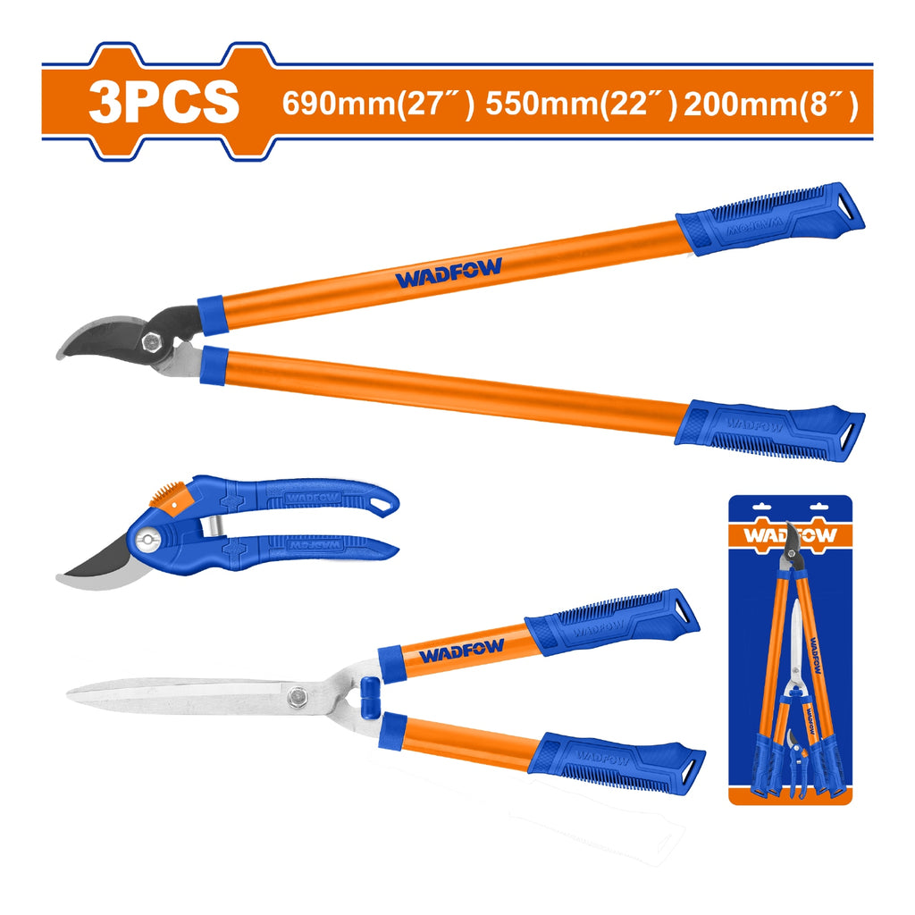 | Características | Incluye:1 tijera de podar de 200 mm/8'' 1 tijera de seto de 550 mm/22'' 1 tijera de podar de 690 mm/27'' Cuchilla tratada térmicamente. |
