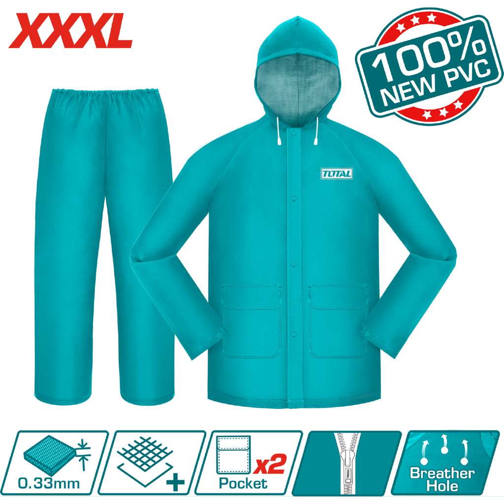 Traje impermeable pantalones y sobretodos PVC+Polyester alta calidad. Espesor 0.33 mm, Tallas: M, L, XL, XXL, XXXL.