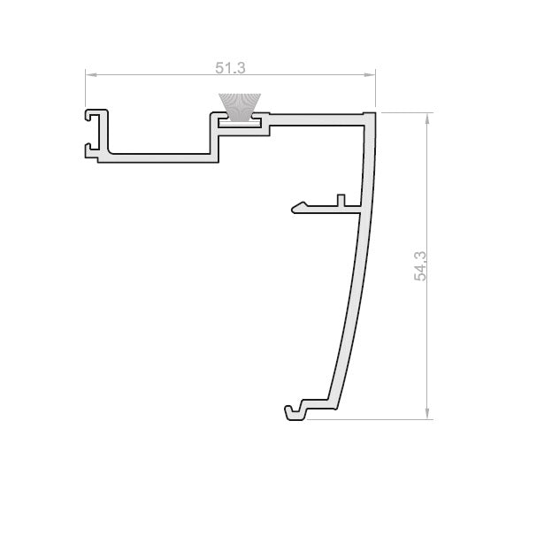 Traslape - Cruce de Hoja. Serie Elevable Europa. Color Negro. Dimensiones 50x55 mm. Espesor 1.5 mm. Largo 5.85 m