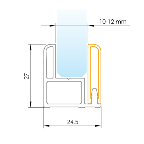 U-Channel Desmontable Vidrio de 10 - 12 mm de Aluminio. Largo de 3 m. Acabado Brillante