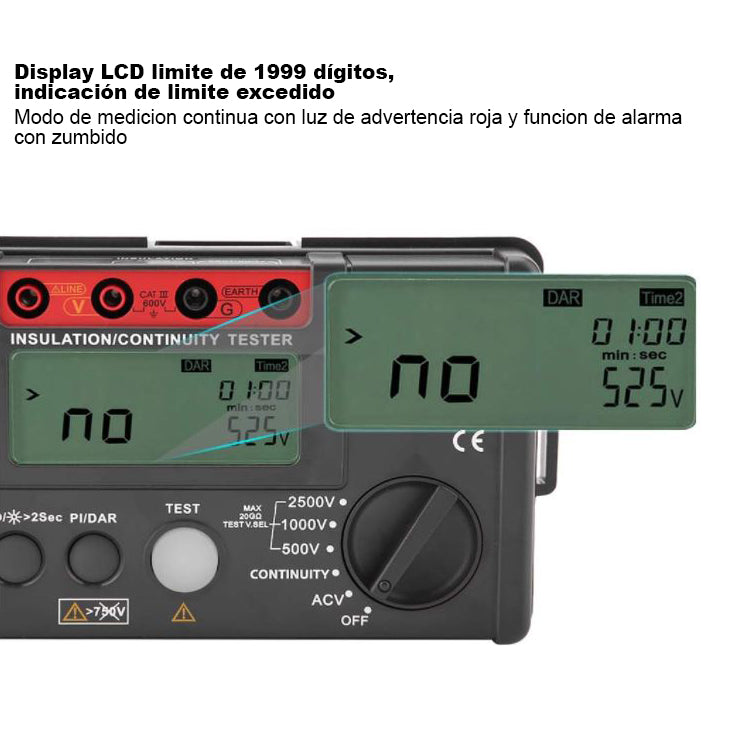 * Alarma luminosa y sónica de voltaje peligroso.